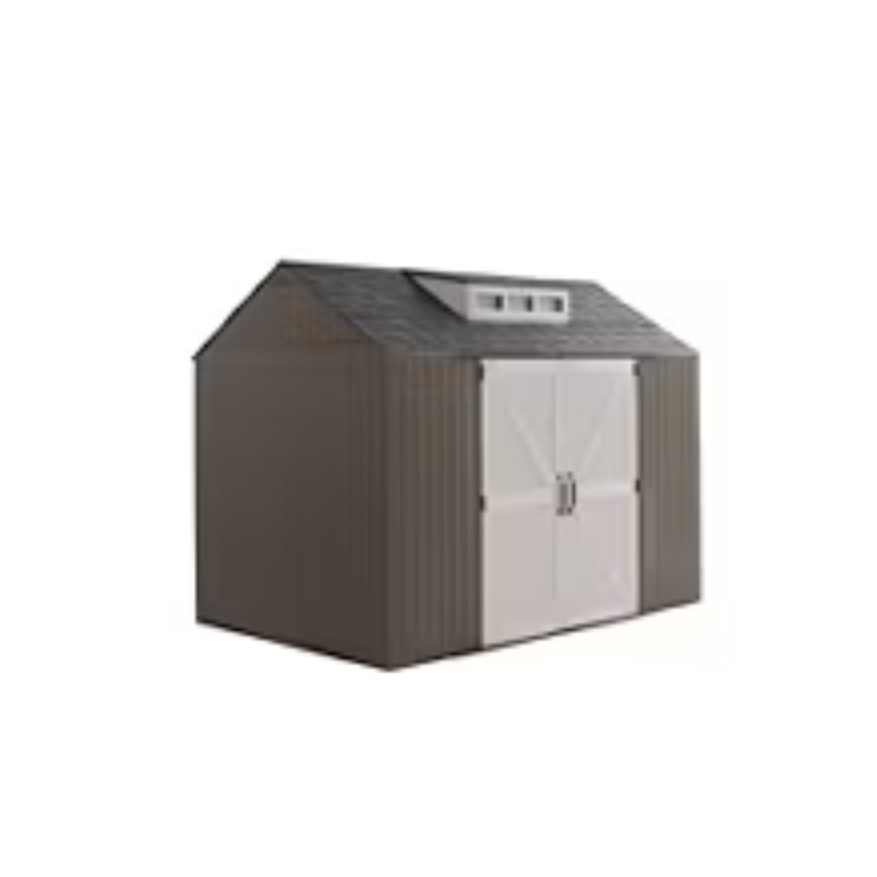 The 7-ft. x 10.5-ft. Storage Shed is made of durable resin that won’t rust or rot, providing weather resistance all year long. This storage shed is faster and easier to assemble than the previous 7-ft. x 10.5-ft. model. This storage shed stores large lawn care essentials, sporting equipment, garden tools, bicycles and more.